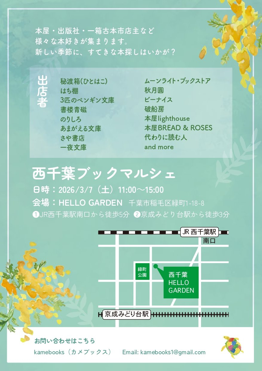 西千葉HELLO GARDENにて、西千葉ブックマルシェが開催されます。