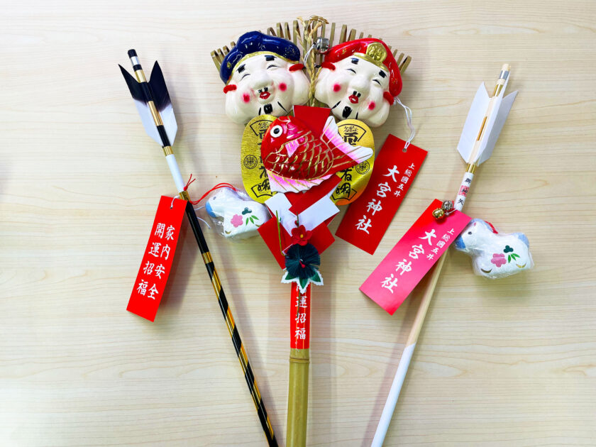 魔を破り福を呼び込む破魔矢(はまや)や、福や金運をかき集める熊手(くまで)。