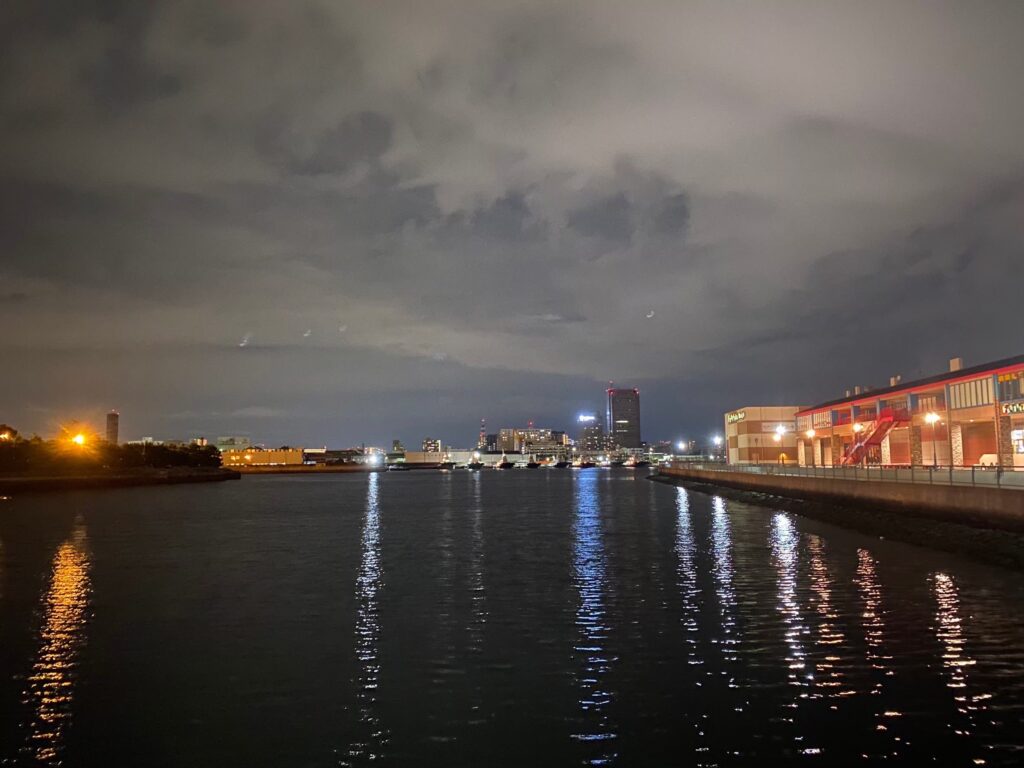 スーパー銭湯の目の前には海が広がっており、夜風をあびながら散歩するのも楽しいひと時。