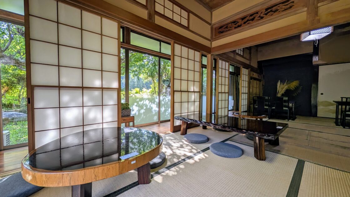 窓からは庭の木々を眺められ、贅沢な時間が過ごせそうです。