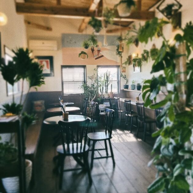 観葉植物にかこまれたボタニカルな雰囲気の店内は、非日常を味わえると評判です。