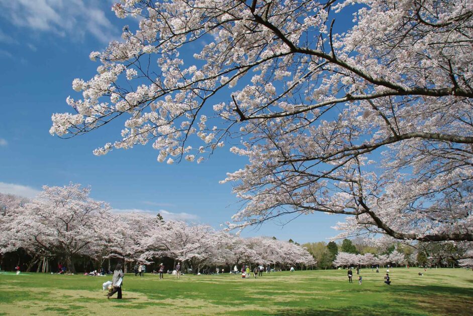 東京ドーム約3.5個分(16万5,000㎡)の広大な敷地に、ソメイヨシノなど約350本の多彩な桜が咲き誇ります。