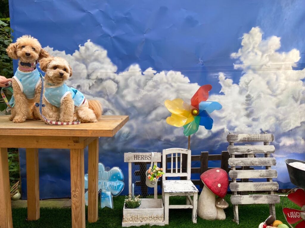 部屋の中は4人+わんちゃんなら広々と使えるくらいの間取りで、フォトブースなどかわいいエリアも準備されています。