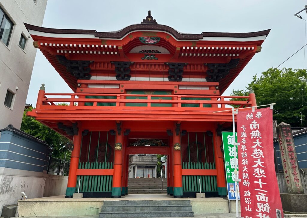 七兵衛から歩いて5分ほど。観音駅周辺でもひと際目立つ「圓福寺 観音堂(飯沼観音)」は、坂東三十三ケ所観音霊場二十七版札所で、本尊は十一面観世音菩薩。