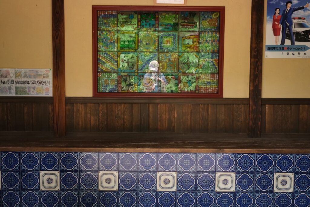 駅舎の中に入ると外観からは予想できない内装がされています。番組の改修工事の結果、待合室にステンドグラスや、ベンチの下に西洋風のタイルが取り付けられました。