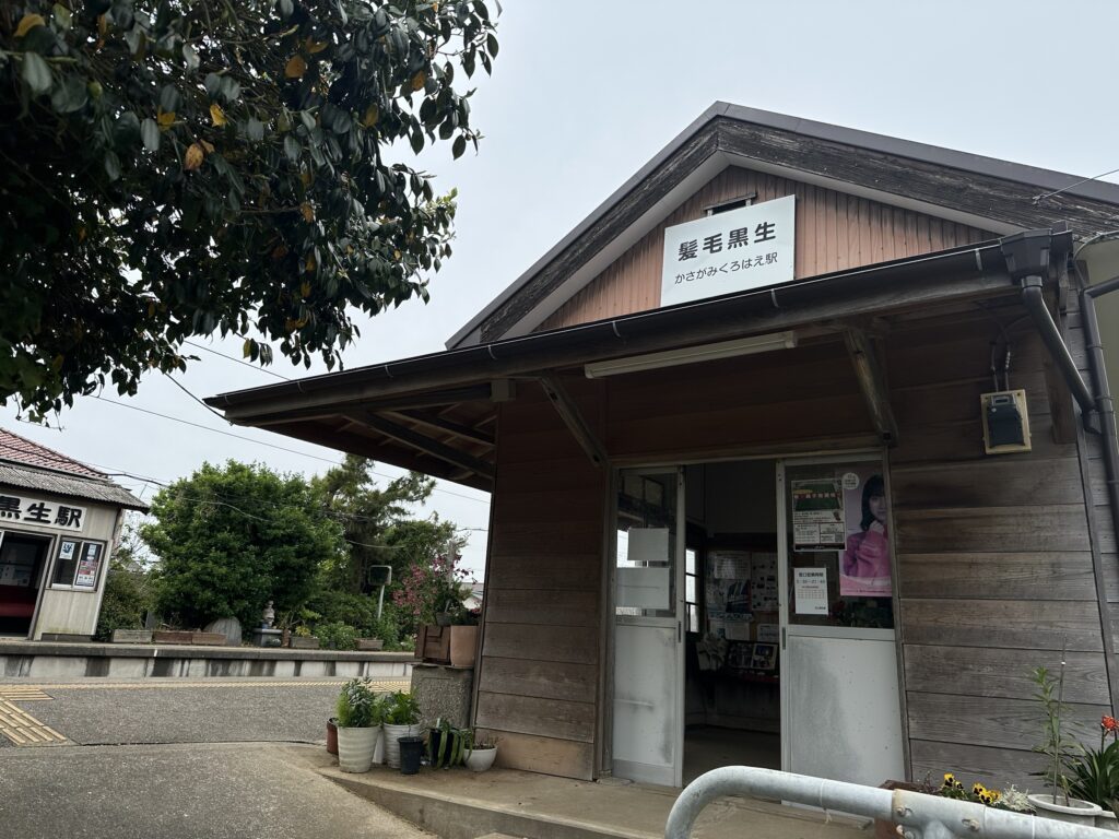 読み方は「かさがみくろはええき」、ゆるやかな一本道の奥に位置しています。