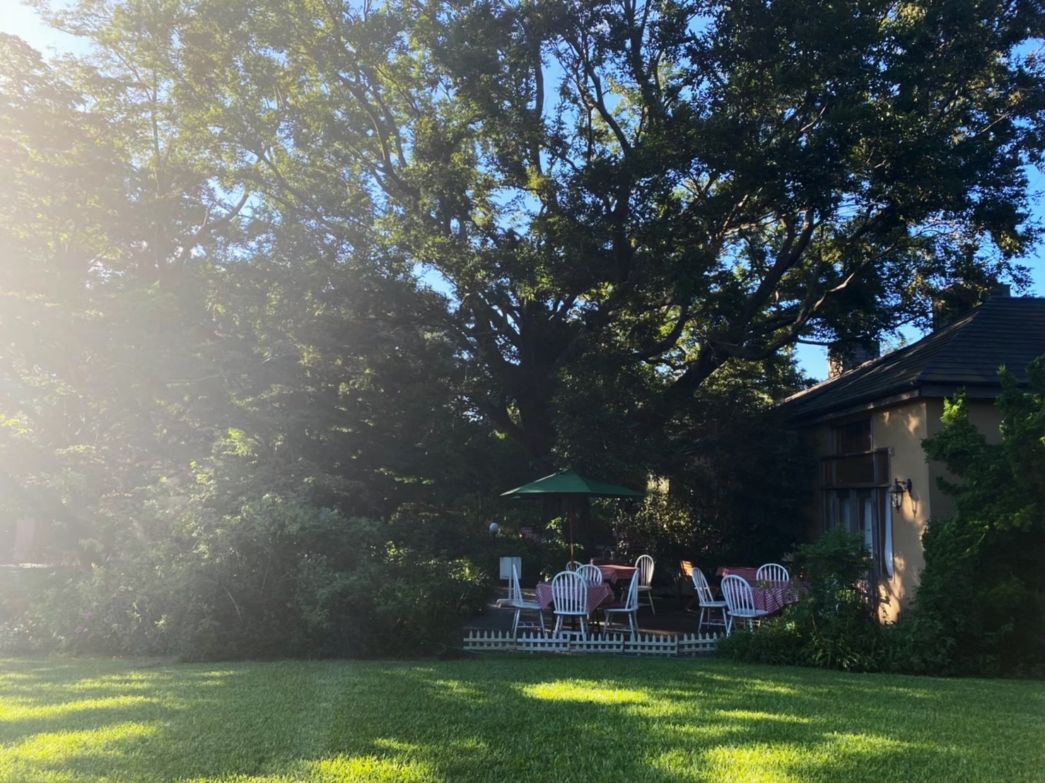 日差しの強い夏の日でも、木々が生い茂るこの庭では、風が通り抜け、どこか時間がゆっくりと流れているように感じられます。