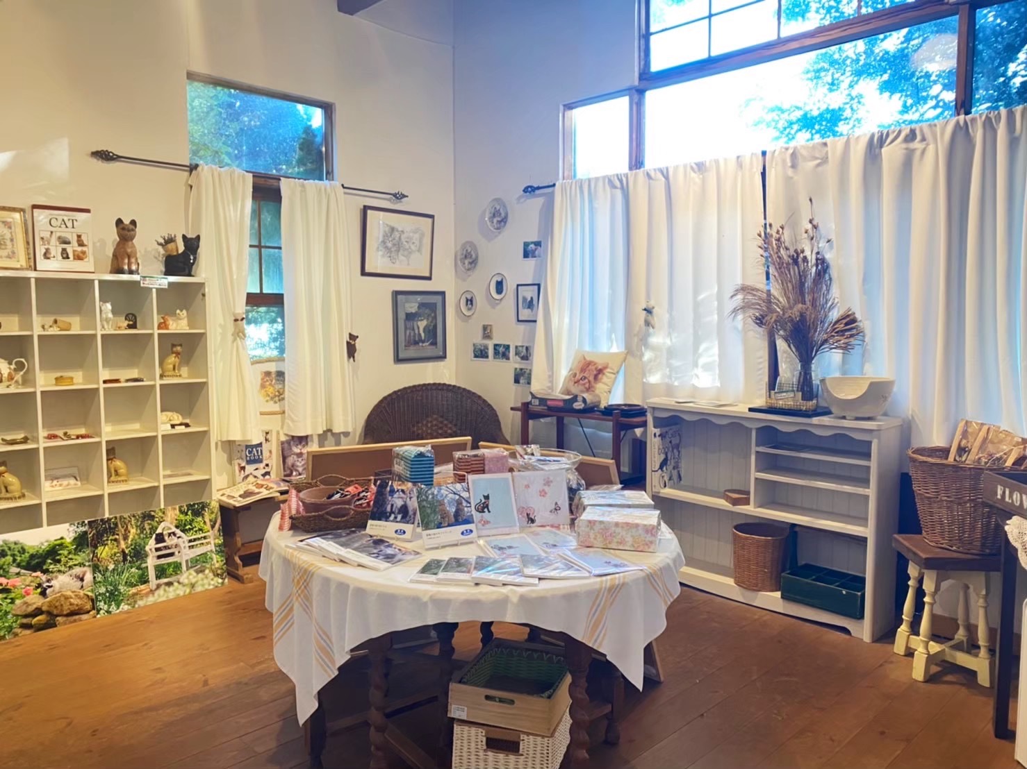 また本棚には、バラやターシャ・テューダーさんの写真集が並び、自由に手に取って楽しめます。まるで「森の小さな図書館」のようなどこか懐かしい雰囲気にあふれています。