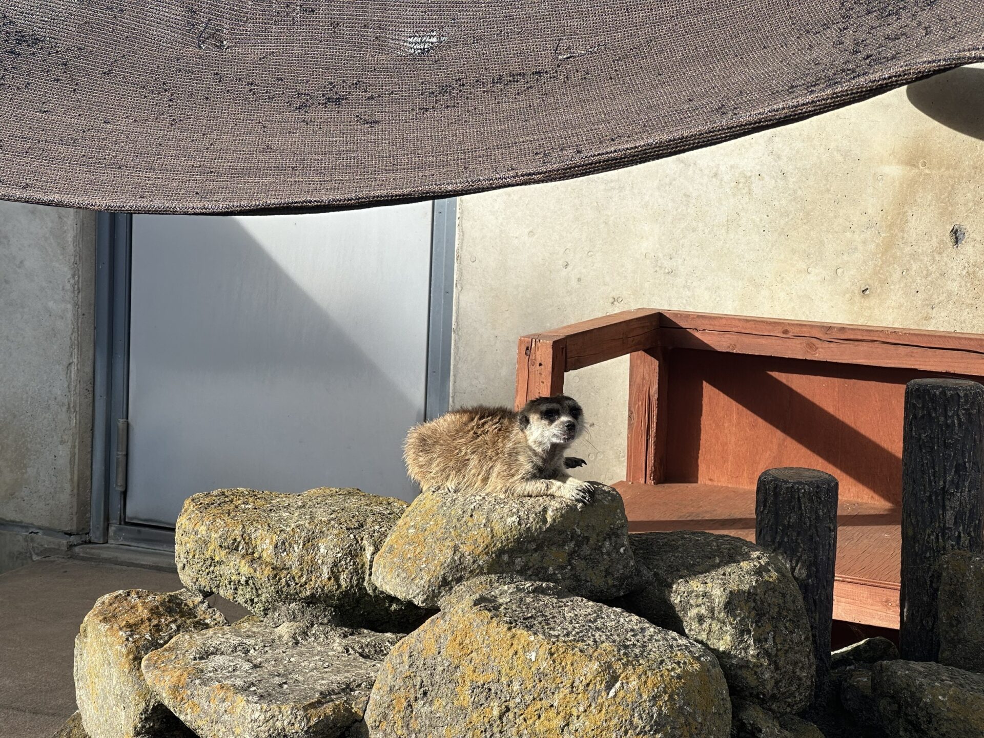 園内ではミーアキャットやタヌキ、レッサーパンダなどがのんびりと過ごしています。
