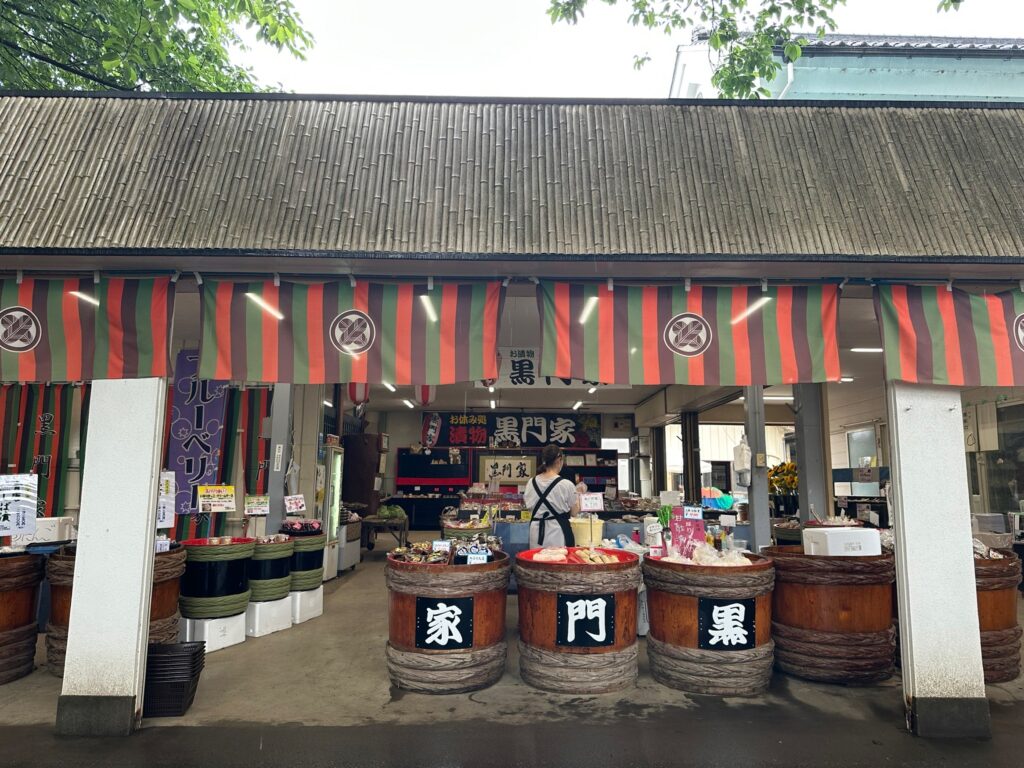 参道には2つのお土産屋さんがあり、駅よりに「黒門家」、仁王門近くに「赤門家」が位置します。