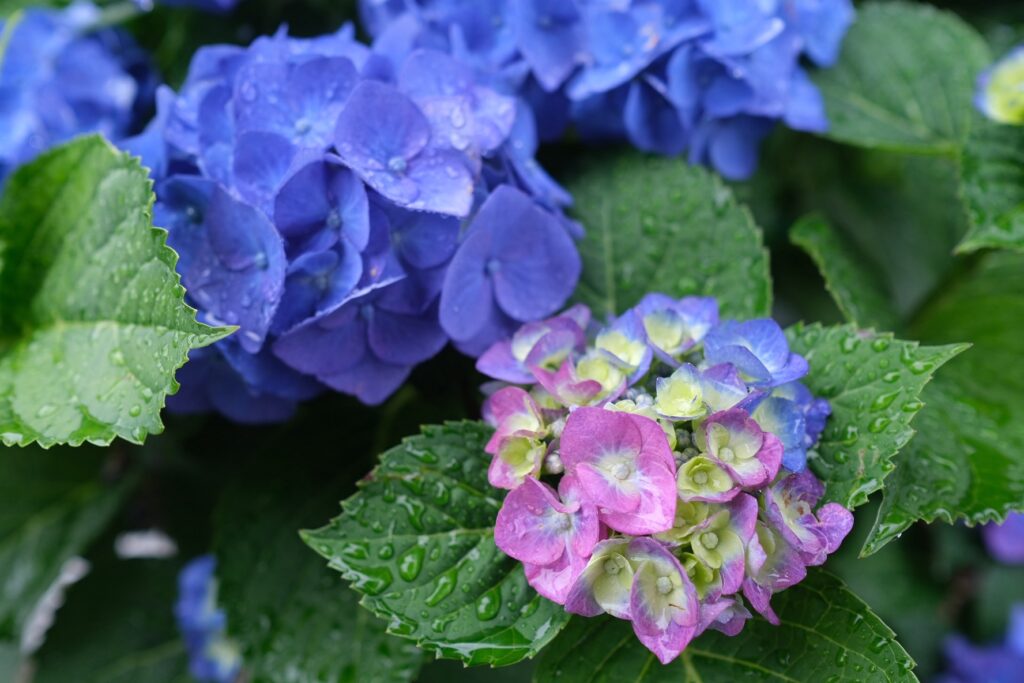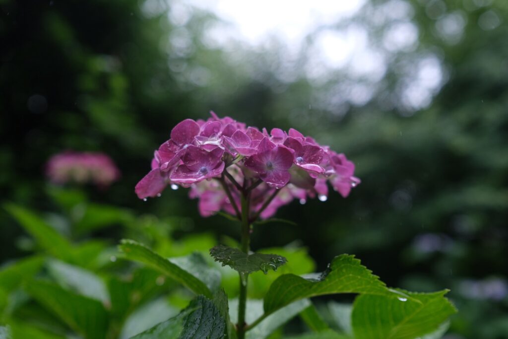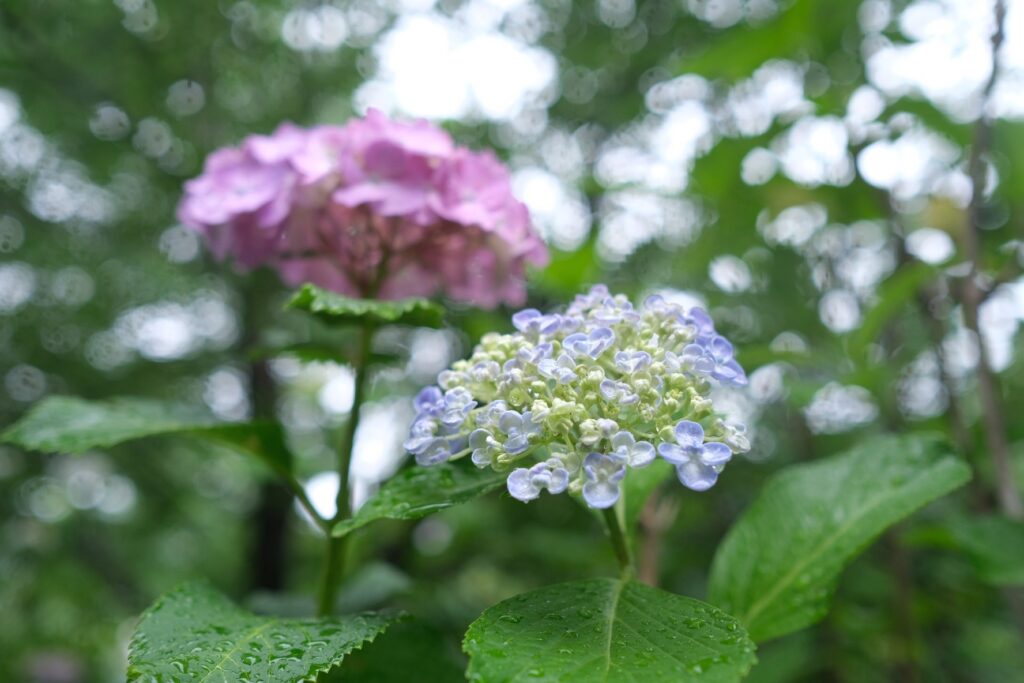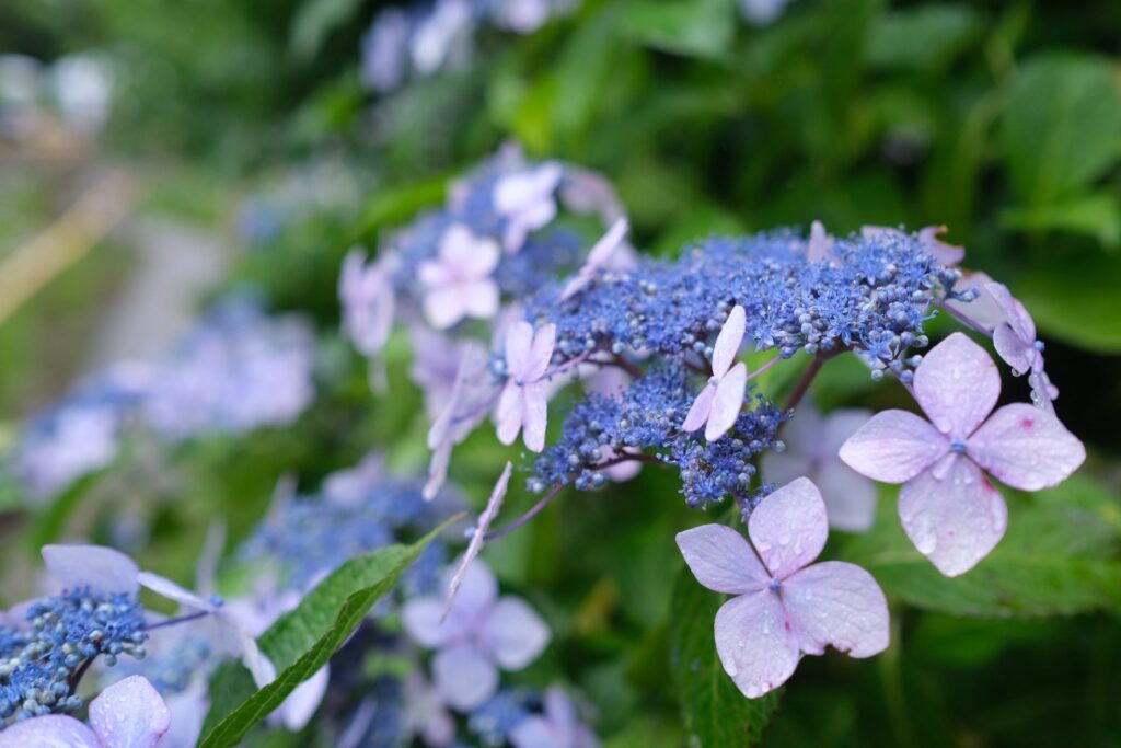 青空に映える紫陽花は清々しく美しいですが、雨に濡れた紫陽花はより美しさが増すように感じます。