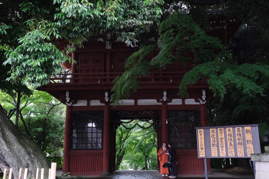 この時期は着物で参拝する方も多く、朱色の門によく映えています。