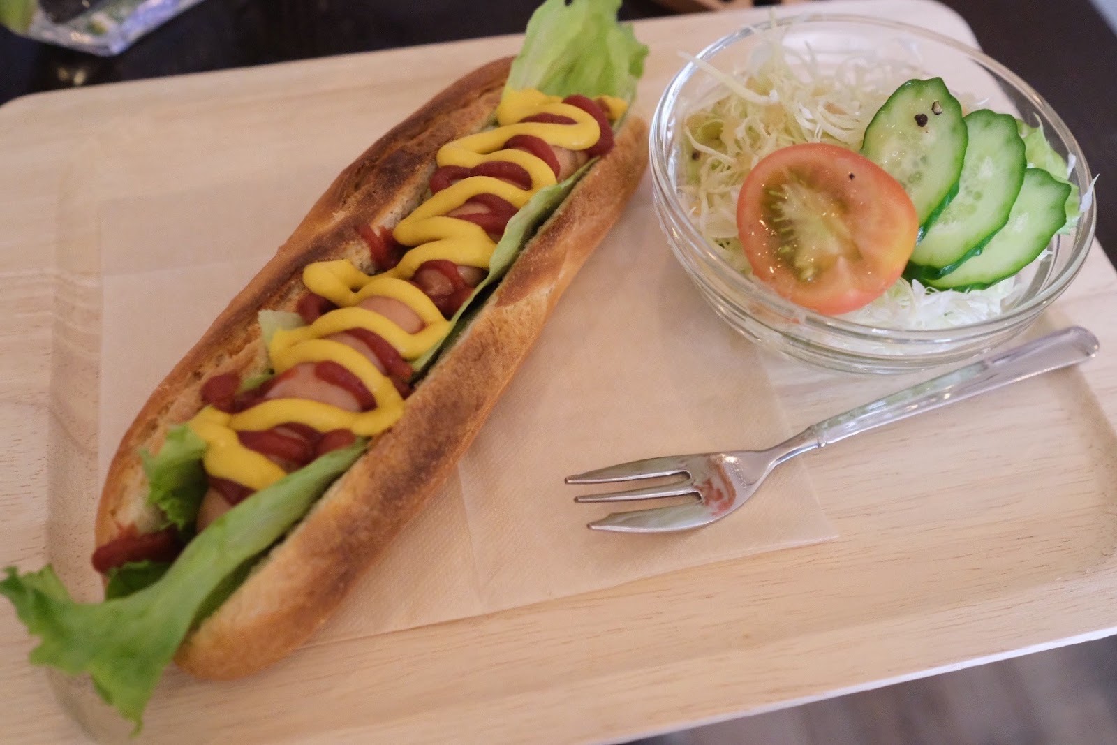 軽食のホットドックやホットサンドはミニサラダ付き。