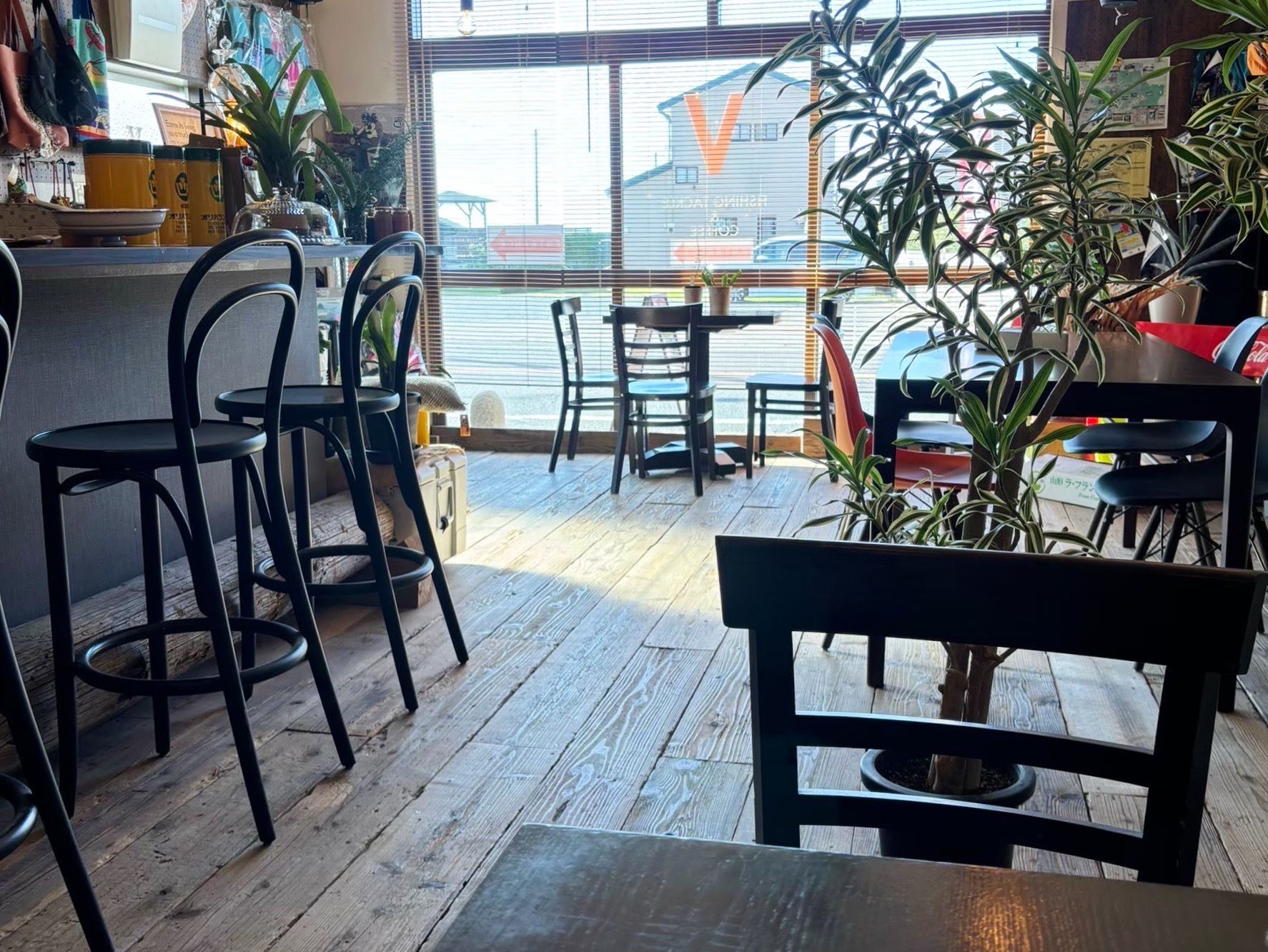 店内は、自然光が差し込む、明るく開放的な雰囲気。