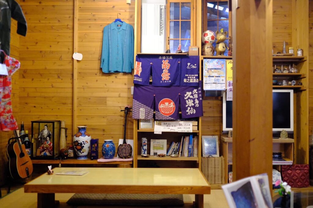 店内の壁には、店主の趣味である釣具や疑似餌がずらりと飾られており、釣りに詳しくなくても目が惹かれるカラフルな空間です。