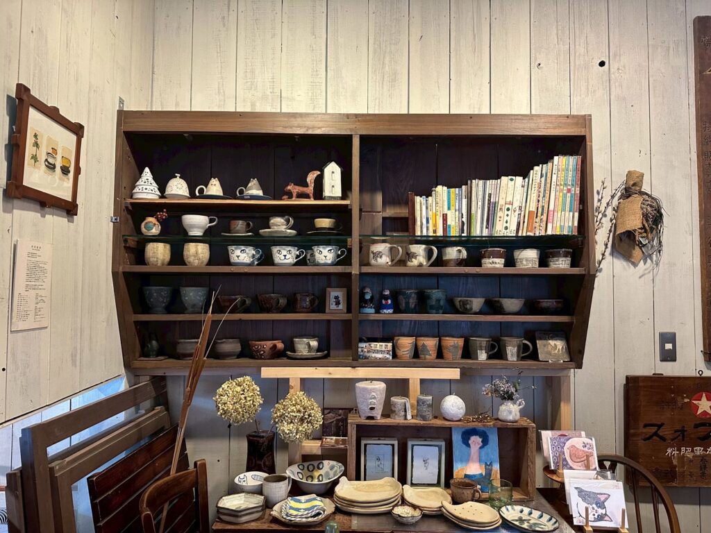 「手仕事と天然素材」がコンセプトのお店で、店内には店主セレクトの笠間や益子の陶器、雑貨が所狭しと飾られ非売品以外は購入も可能。
