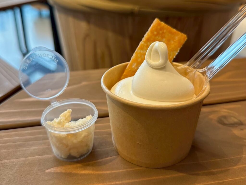 ほろほろと崩れる軽やかな食感は唯一無二で、なめらかなソフトクリームとあわせて食べると、より特徴が分かります。