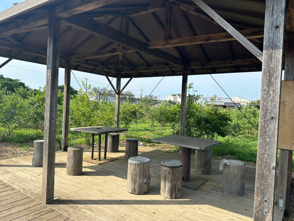 園内には座って食べられる休憩スポットも◎