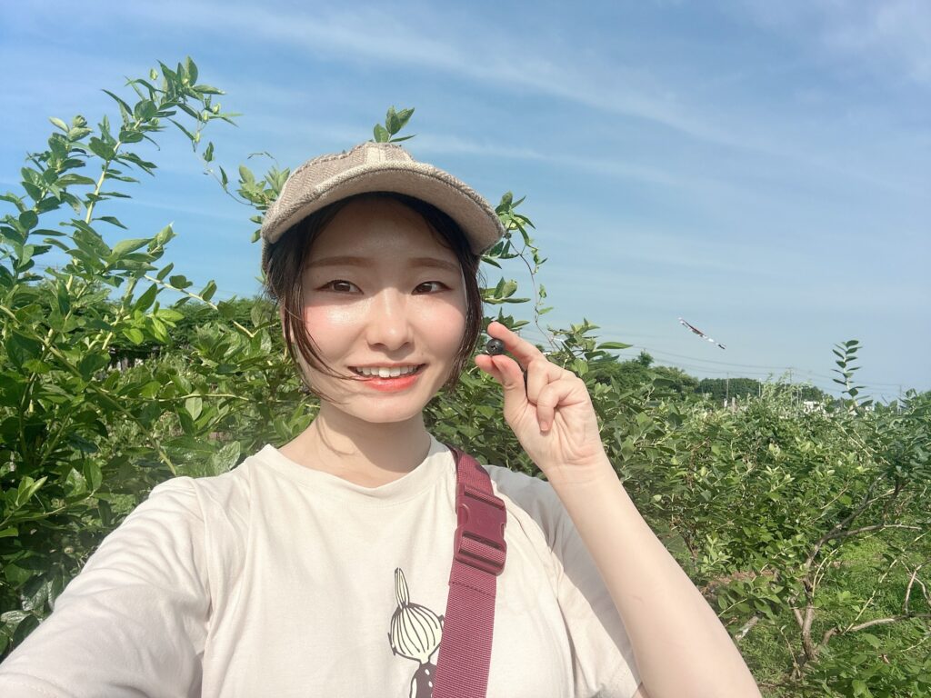 ブルーベリー狩りは人生初だったので、いちご狩りのようなハウスをイメージしていたら、まさかの屋外!