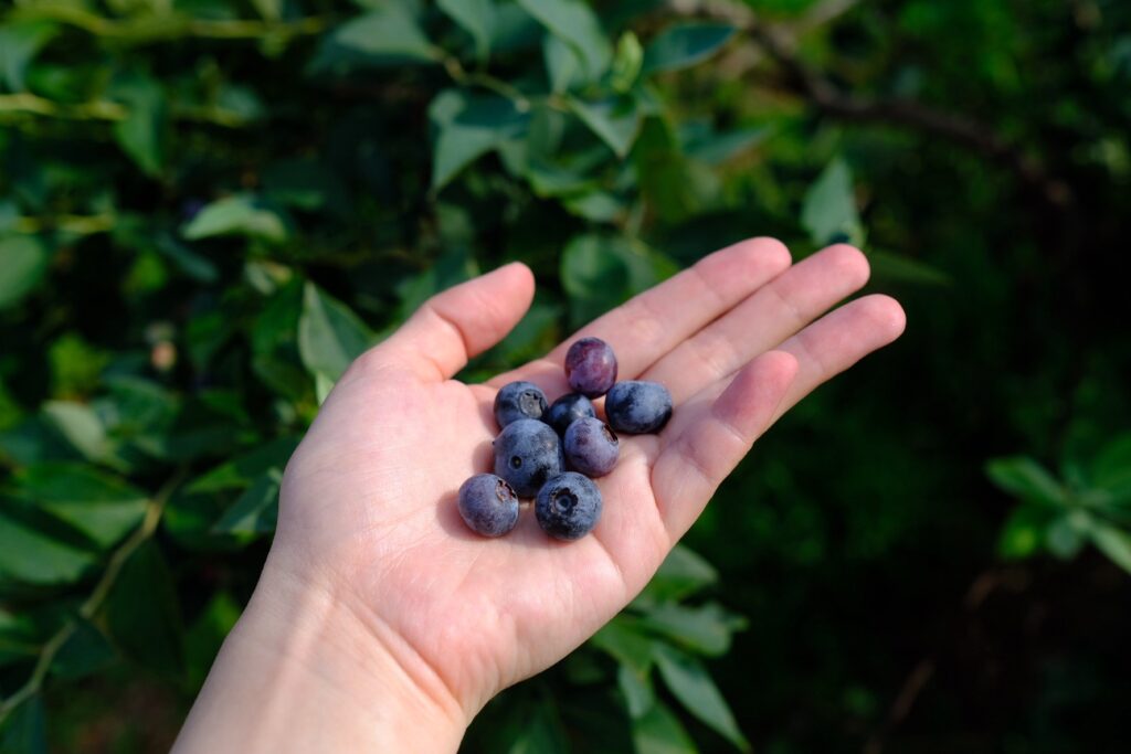 ブルーベリー狩りは、摘み取りやすいので子どもから大人まで誰もが気軽に楽しめる体験です。