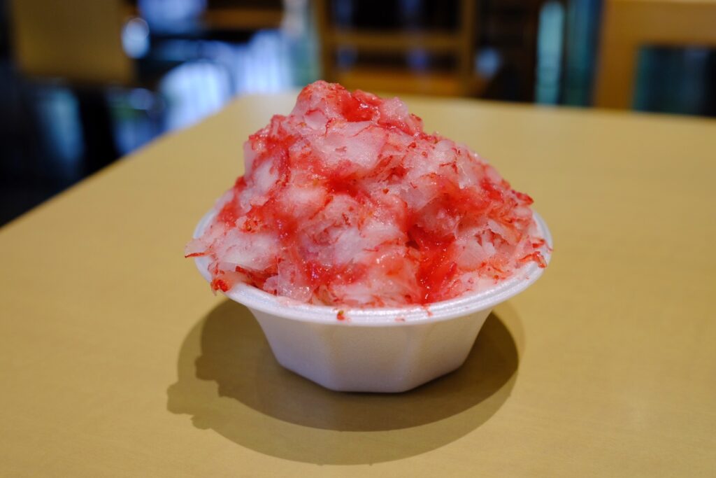 口に運ぶと、軽やかでふわふわとしたいちご氷が瞬時に溶け出し、いちごの濃厚な甘みと爽やかな酸味が一気に広がります。