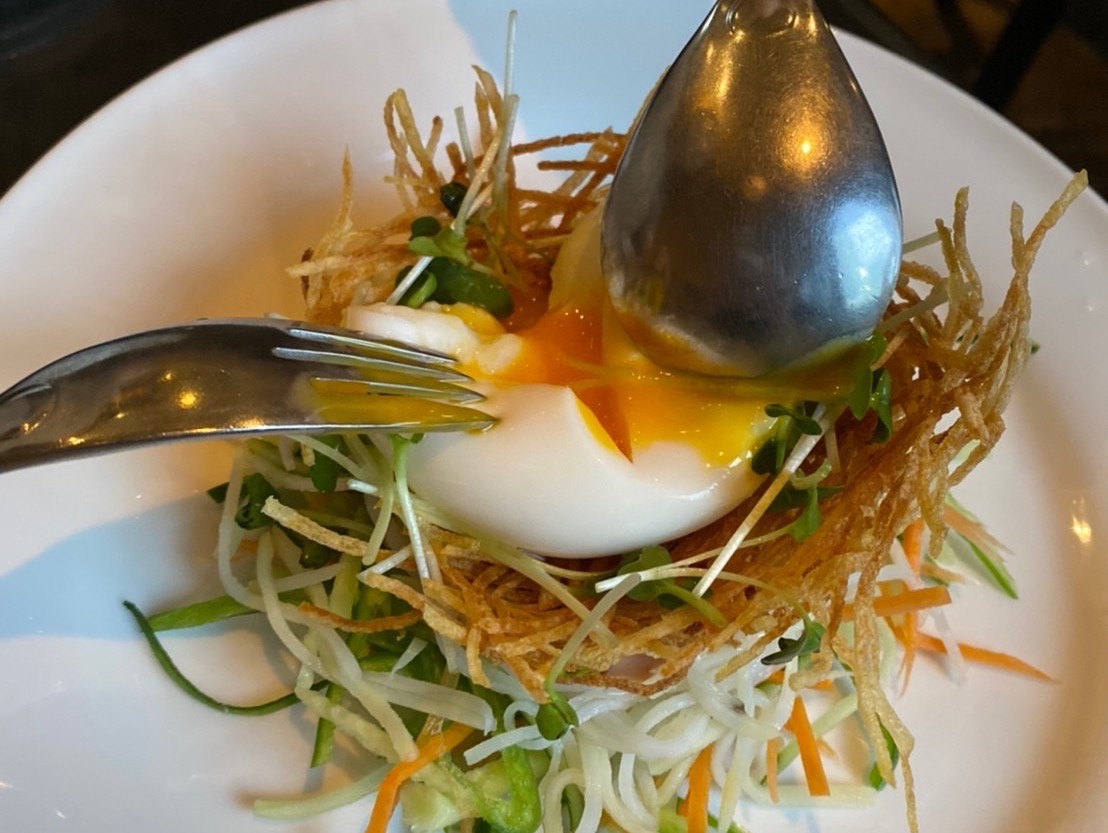 確かに恐竜の卵のような見た目!創作料理ならではのユニークな看板メニューです。
