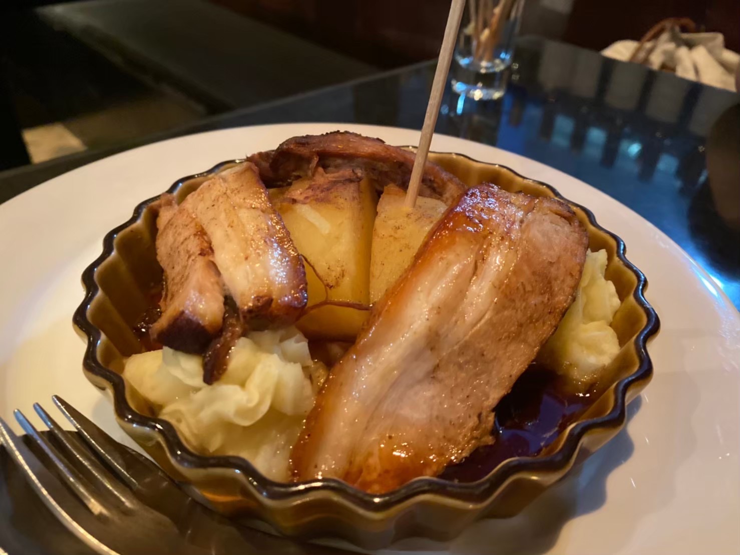中華風味付けのチャーシューと、クリーミーなマッシュポテトの魅惑のコラボレーション。