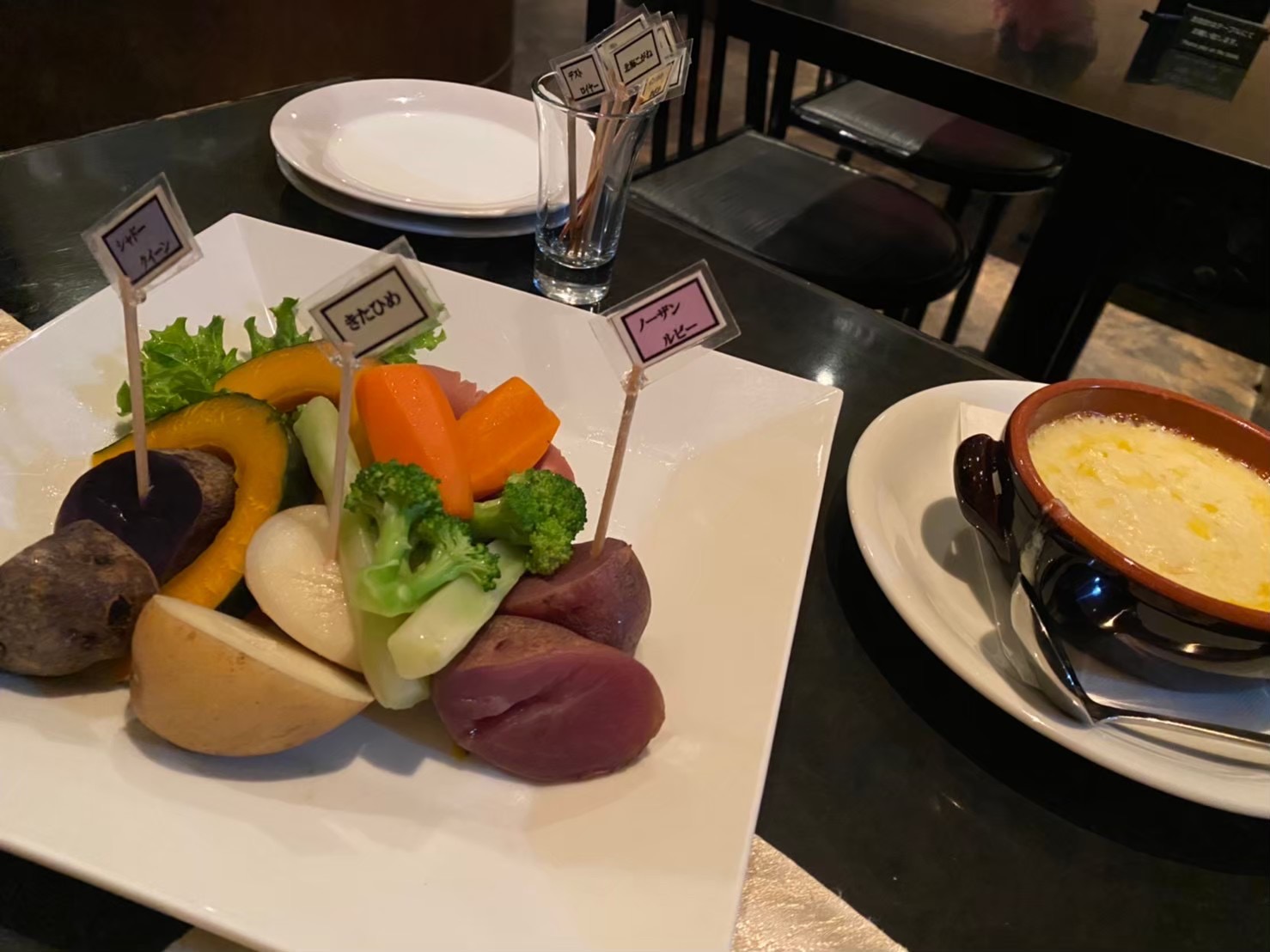 数種類のじゃがいもと蒸し野菜の甘みは、アリゴの濃厚なコクが絶妙に合わさった、バランスの取れた料理です。