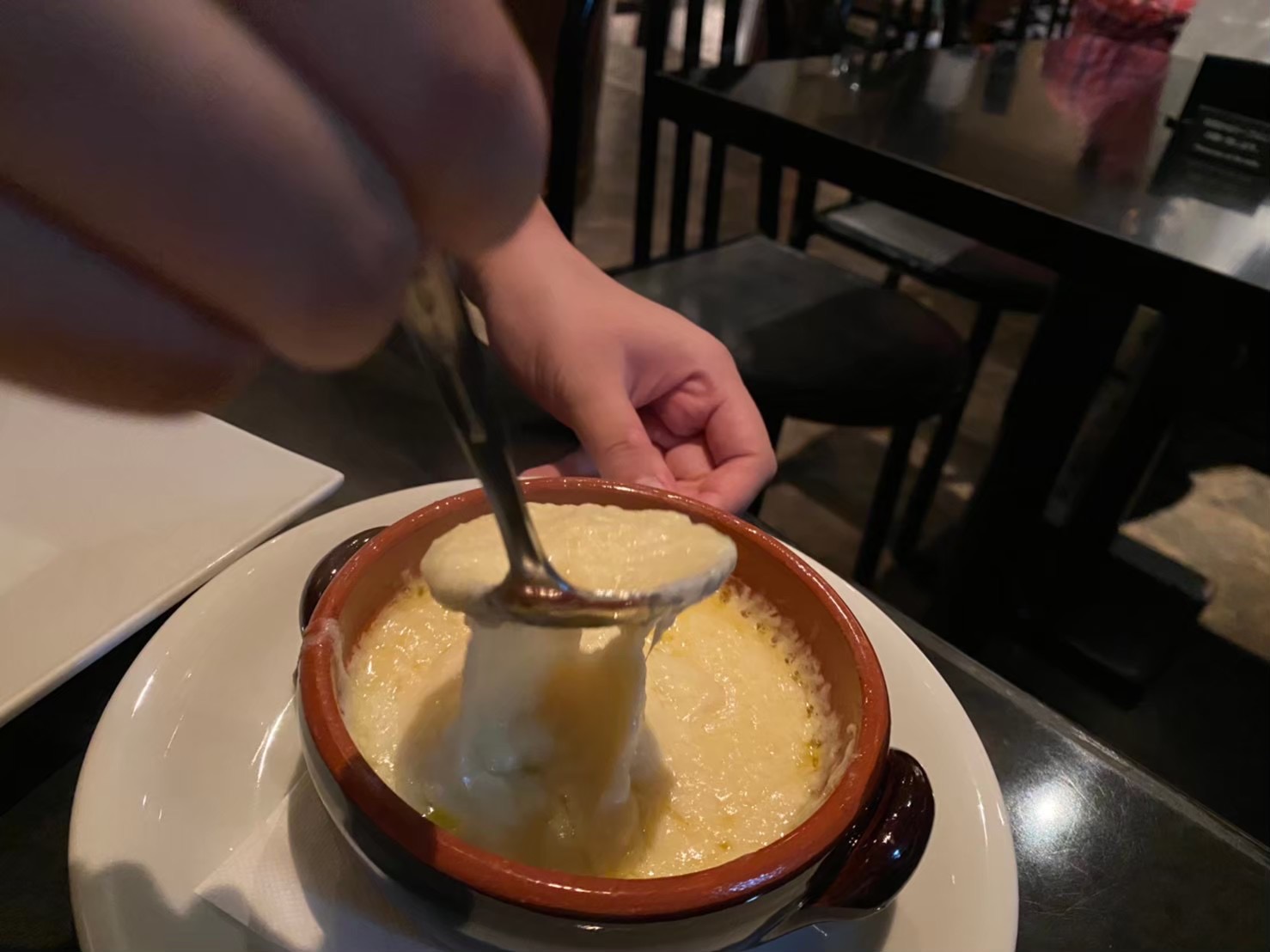 見た目はチーズフォンデュですが、メニューの注意書きにあるように一躍SNSで話題を呼んだアリゴという料理。