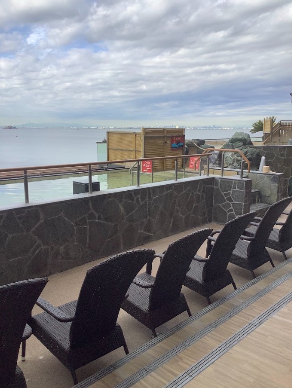 JFA夢フィールド 幕張温泉 湯楽の里の外気浴スペースは、なんと目の前が海!