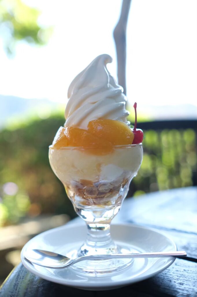 いちじく狩りが行われていない時期も、館山の「須藤牧場」とコラボレーションしたソフトクリームやパフェが味わえることで一年を通して楽しめるスポットです。