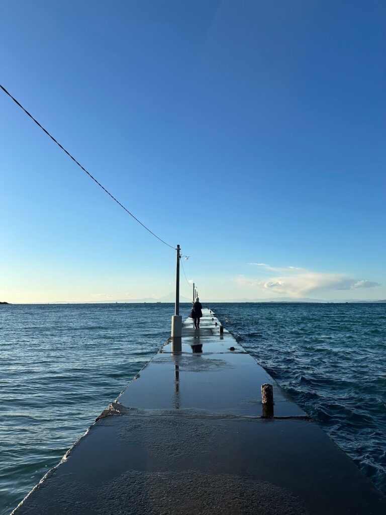 長さ約200メートルの木製の桟橋は、青い海と空を間近に感じられる場所で、まるで海の上に浮かんでいるかのような感覚を味わえます。
