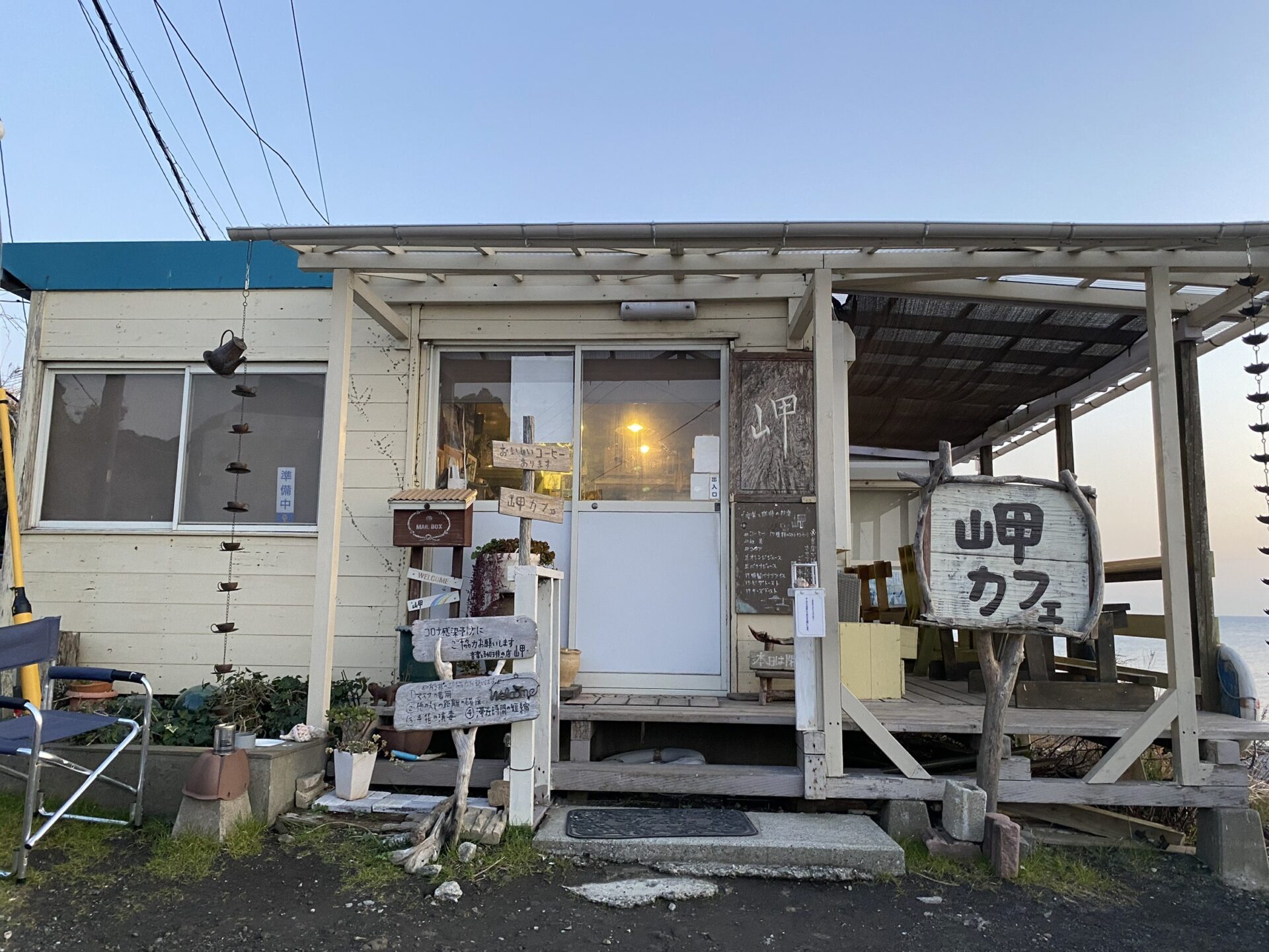 千葉県鋸南町の国道127号、トンネルを出てすぐ左手に曲がると辿りつく「音楽と珈琲の店 岬」は、その名の通り、珈琲と心地よい音楽、そして何よりも圧巻のロケーションが魅力の絶景カフェです。