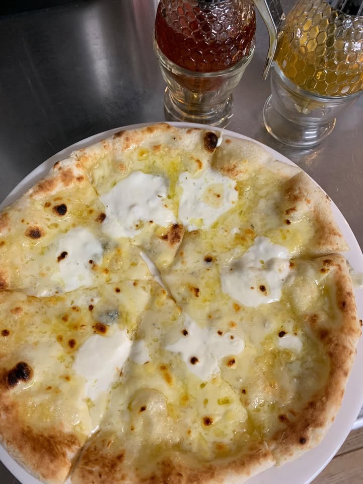 4種類のチーズを贅沢に使ったピザ「クアトロフォルマッジ」には、好みのはちみつをかけ放題!