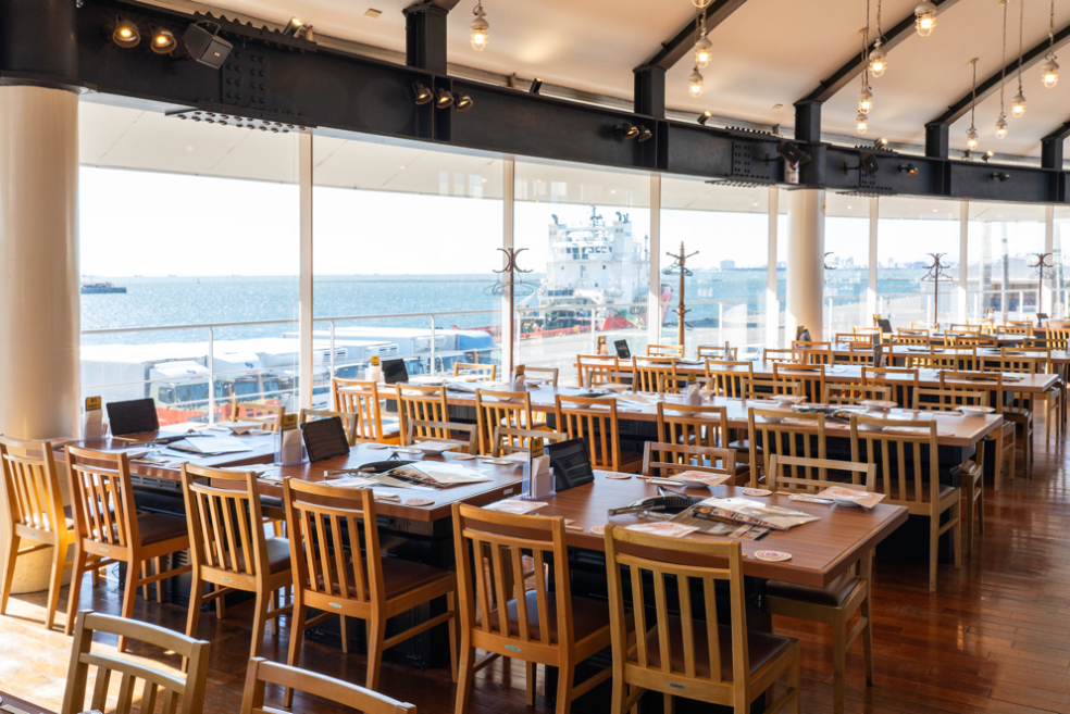 そして窓の向こうには、雄大な東京湾の景色が広がります。昼は青くきらめく海を眺めながら、夜はベイエリアの夜景を背景に乾杯。