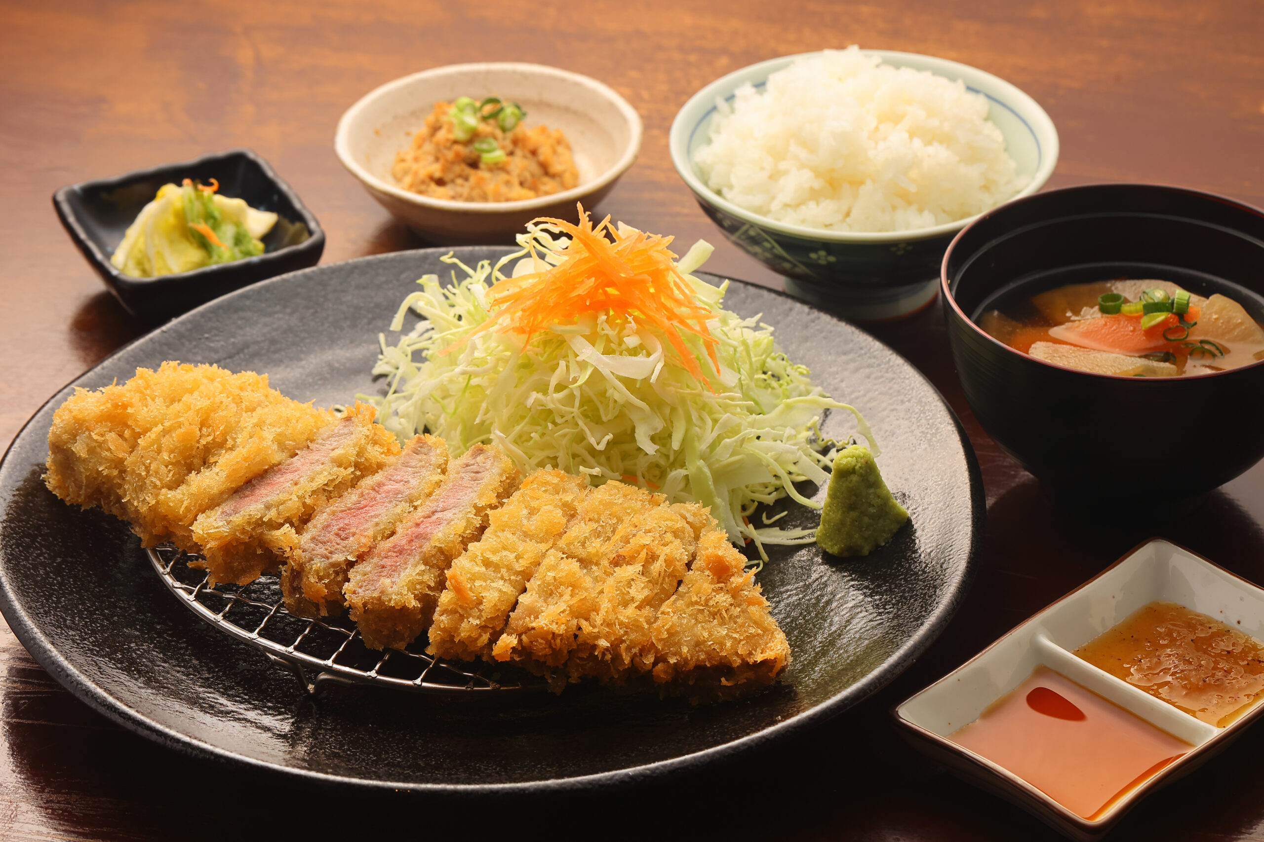 いつもより少し贅沢したい気分のときにおすすめなのが、「特選牛カツ定食」。
