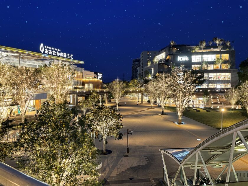 流山おおたかの森イルミネーション2025では、森のまち広場を約20万球の温かな光が包み込みます。
