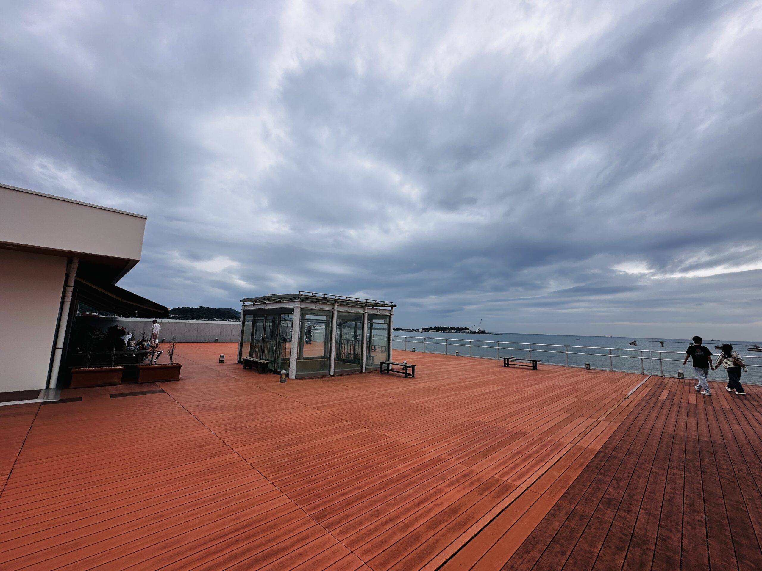 まず訪れてほしいのは、2階にある展望テラス。目の前に広がる鏡のように穏やかな館山湾は「鏡ヶ浦(かがみがうら)」とも呼ばれ、その静けさと美しさは、訪れる人の心を優しくほどいてくれます。天気の良い日には富士山や伊豆諸島を望むこともでき、夕暮れ時にはオレンジ色に染まる空と海が、まるで映画のワンシーンのよう。カメラを向けずにはいられません。