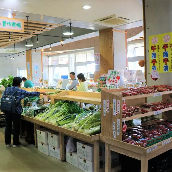 館内には新鮮な地元野菜や魚介類を取りそろえた直売所があり、特に早朝には地元漁港から届く朝獲れ鮮魚が並ぶことも。フードコートでは房総ならではの海鮮丼やラーメン、ソフトクリームなど家族で楽しめるメニューが豊富です。
