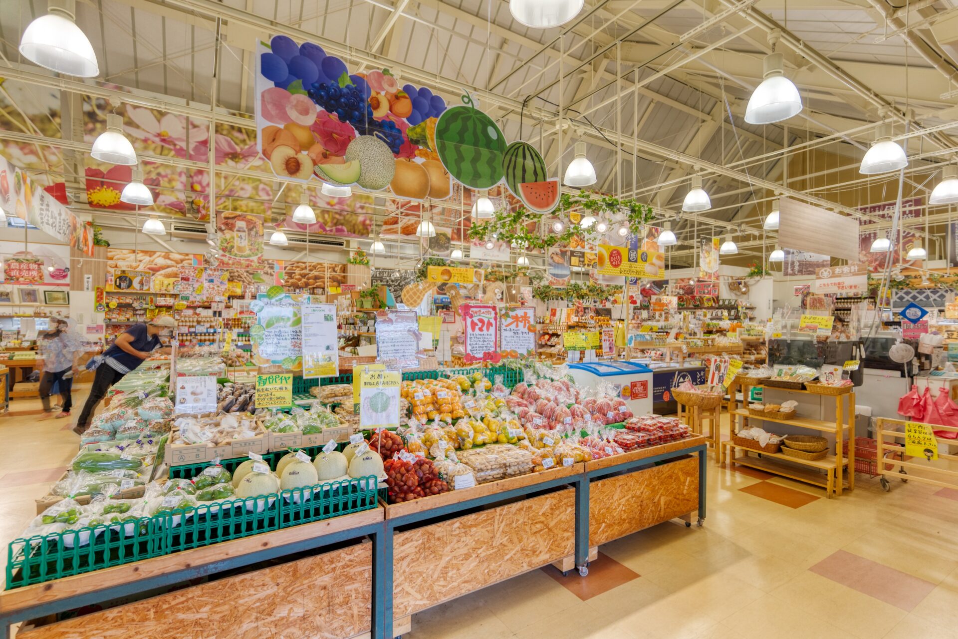 朝採れのトマトやナス、ピカピカに輝く果物がずらりと並び、地元の農家さんたちの愛情が感じられる優しい味わいの品々が魅力です。