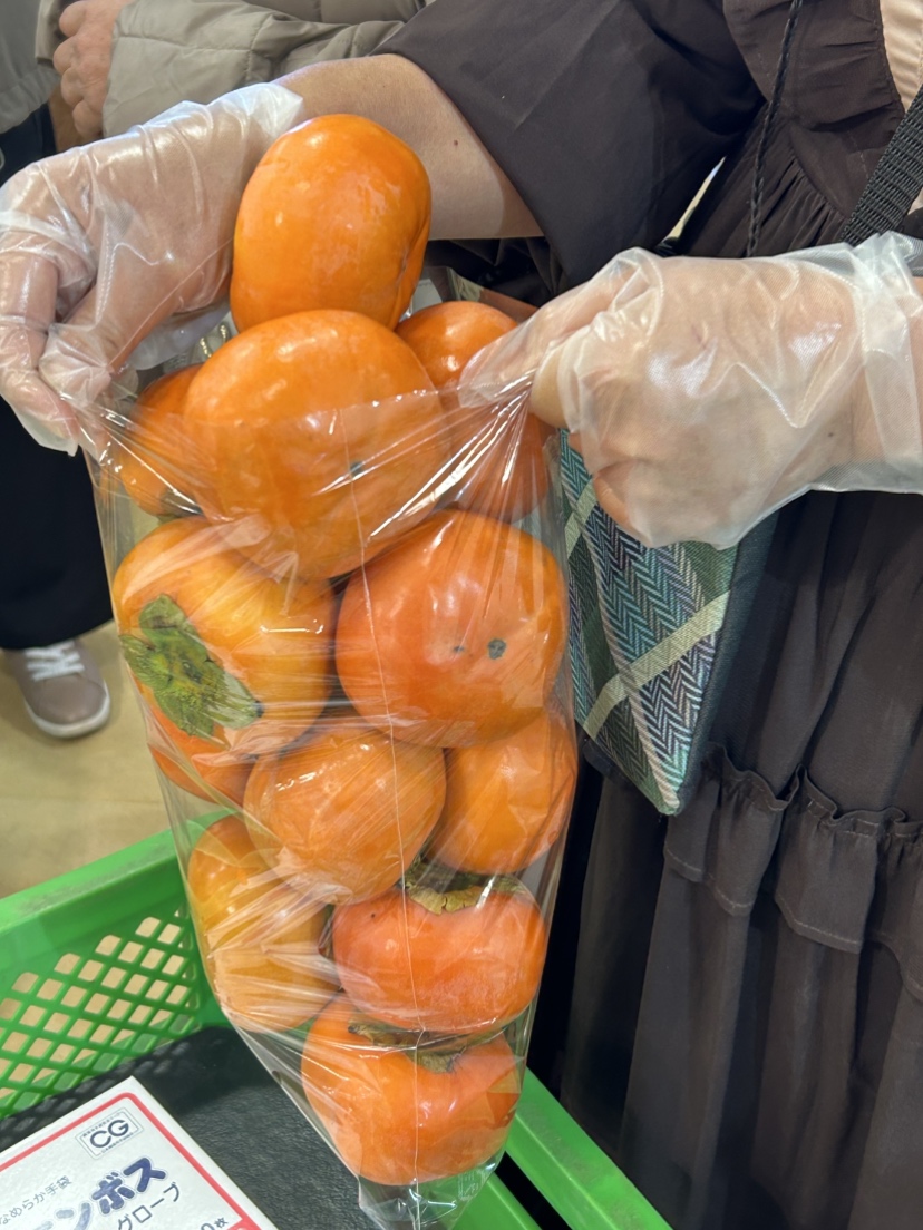 秋には柿の詰め放題も登場。地元産の甘くてジューシーな柿を、袋が破れないように慎重に、でもめいっぱい詰めていく姿は、まるで市場の名人。家族や友人と競い合いながら参加するのも楽しいポイントです。