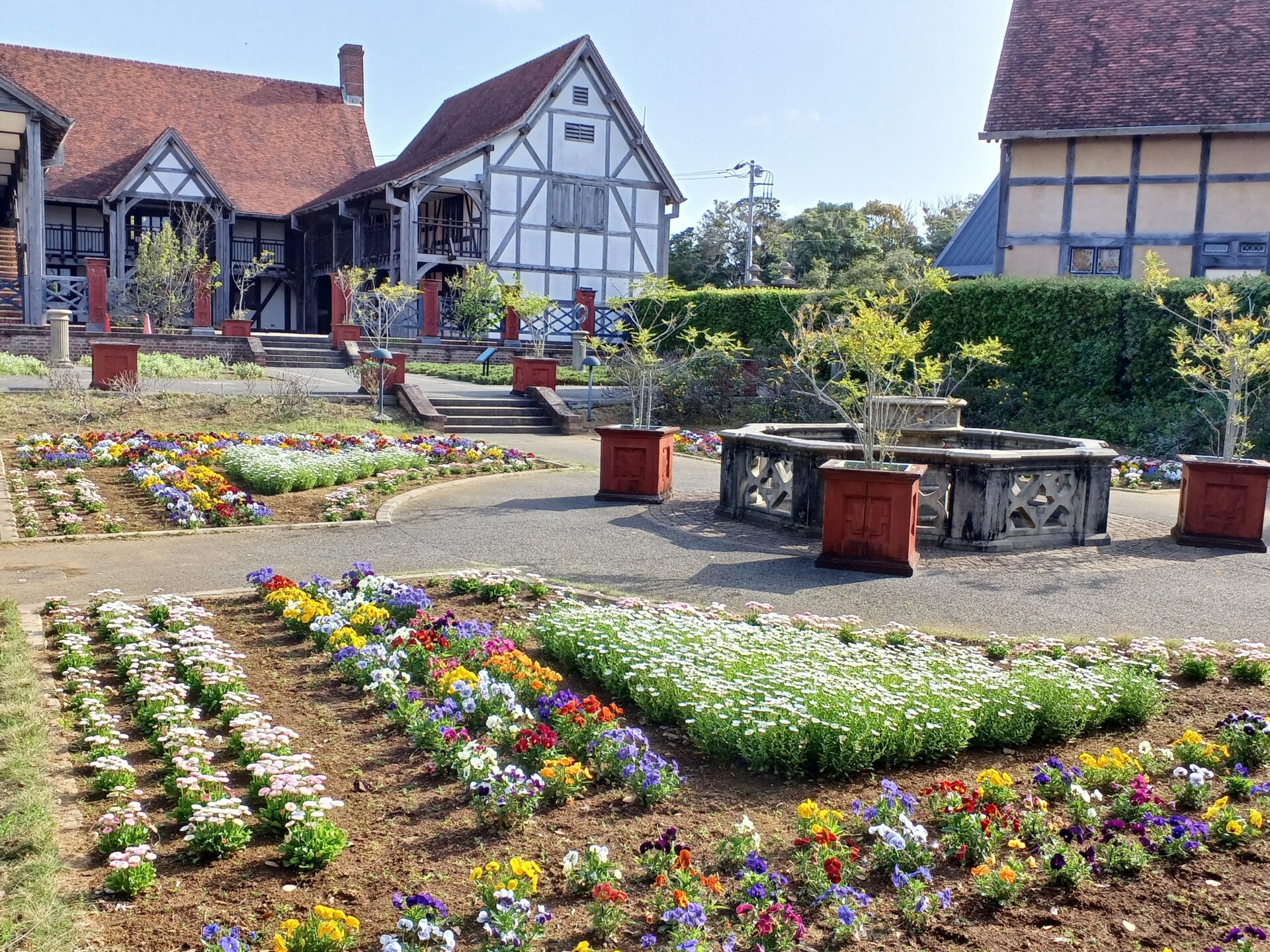 南房総の豊かな自然と温暖な気候を活かし、園内にはハーブが香るガーデンや、ヨーロッパ調の建物が並び、季節の花々とともに非日常の雰囲気を楽しめます。