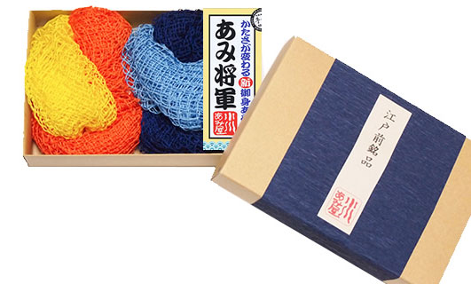 「御身あらい」や「あわだらけ」「あみたわし」を製造・販売する「小川漁網商店」。