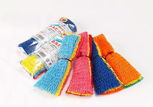 もともと漁網の製造・販売を手がけてきた同社が、その専門技術と知見を活かし、ボディタオルや食器洗いたわしも手がけています。