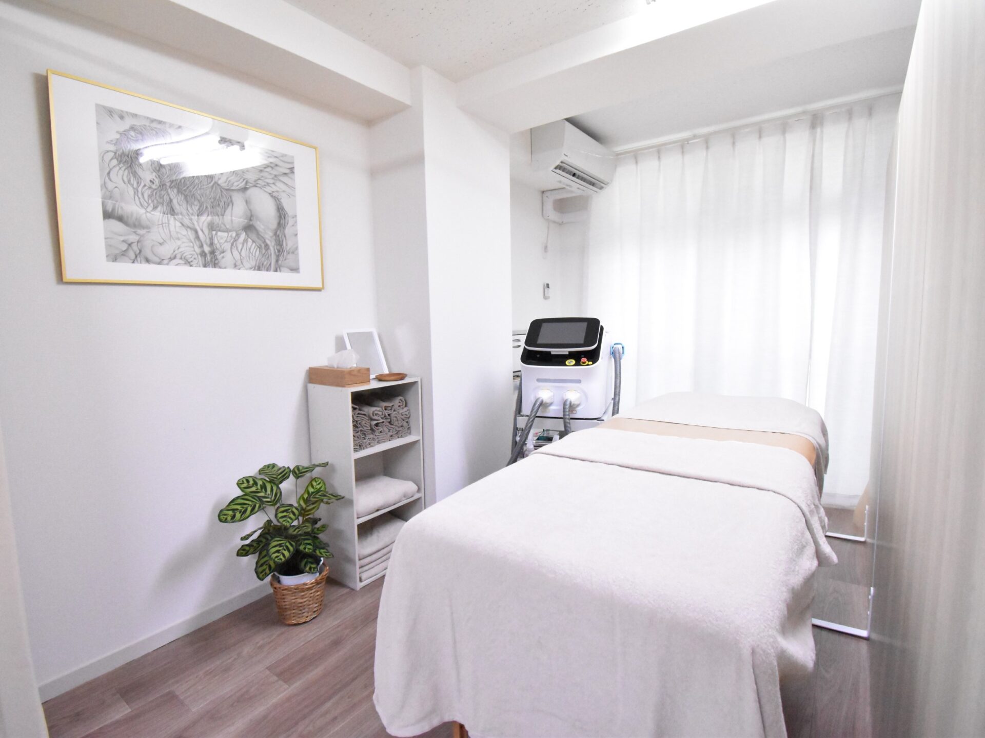 清潔感のある落ち着いた店内では、最新マシンを使ったスピーディーで痛みの少ない施術を提供。
