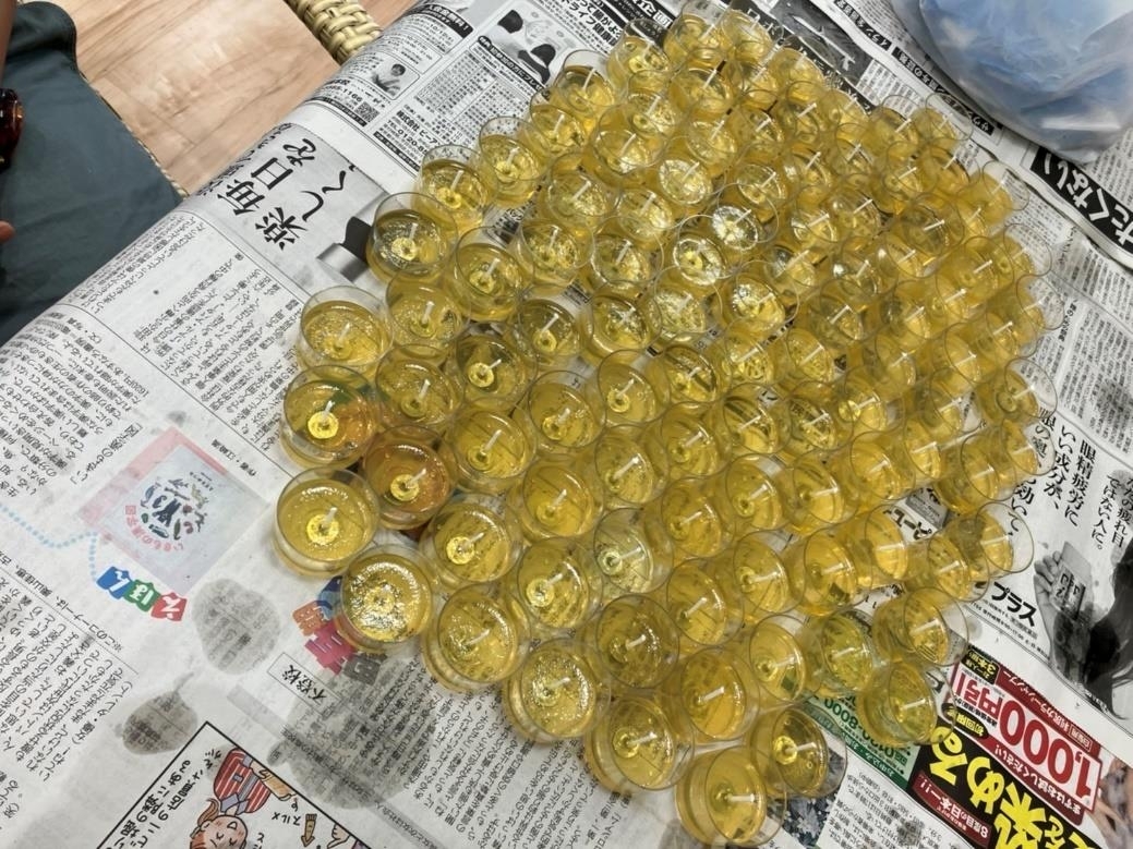地域の小学生・少年野球メンバー・きさてらす利用者が木更津の海「盤洲干潟」に生きる動植物の絵を紙コップに書き、「廃油を海に流さないで欲しい」という思いを込めて約500個のキャンドルを制作。