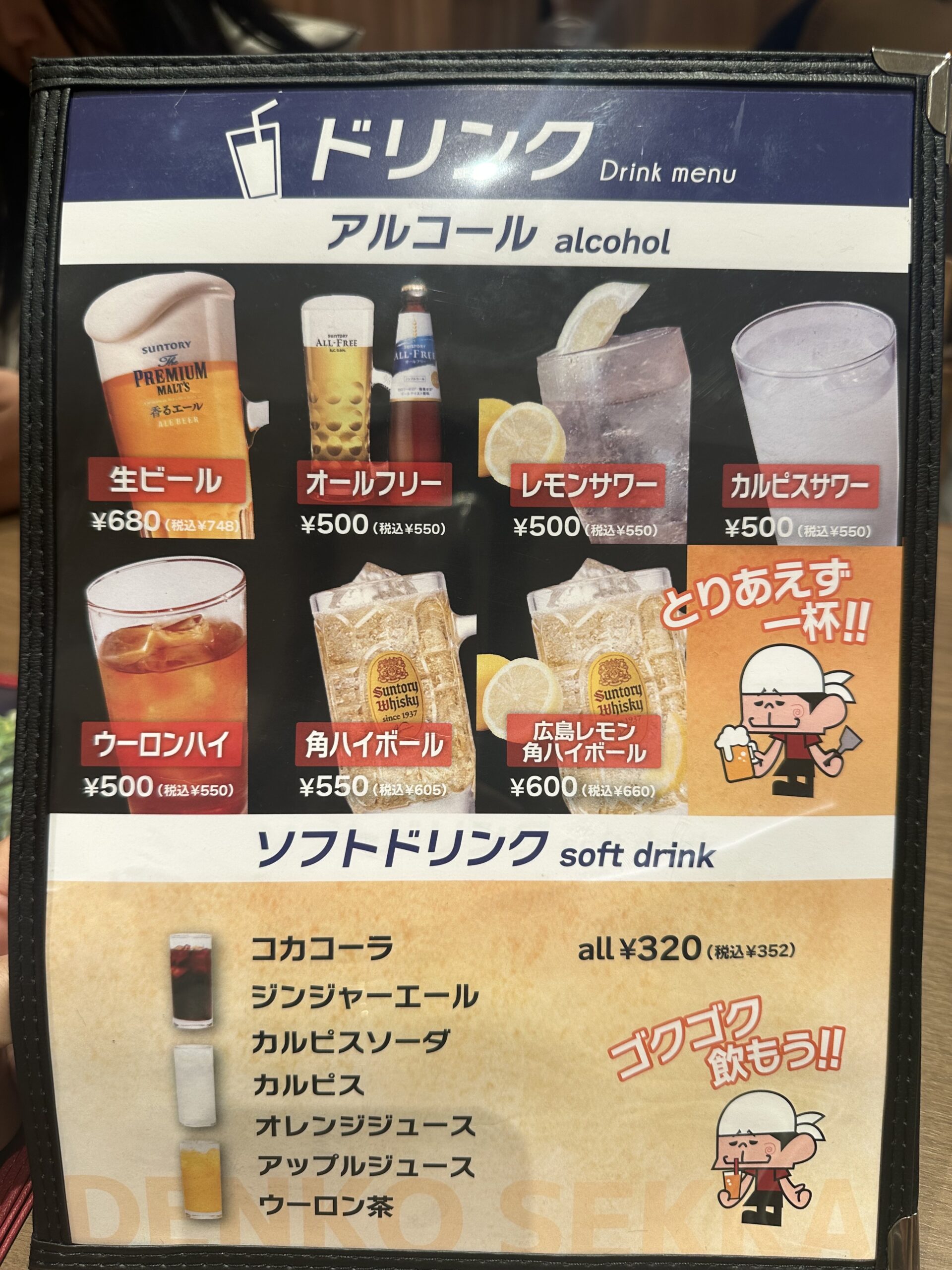 熱々のお好み焼きで喉が渇いても、すぐに水分補給可能。