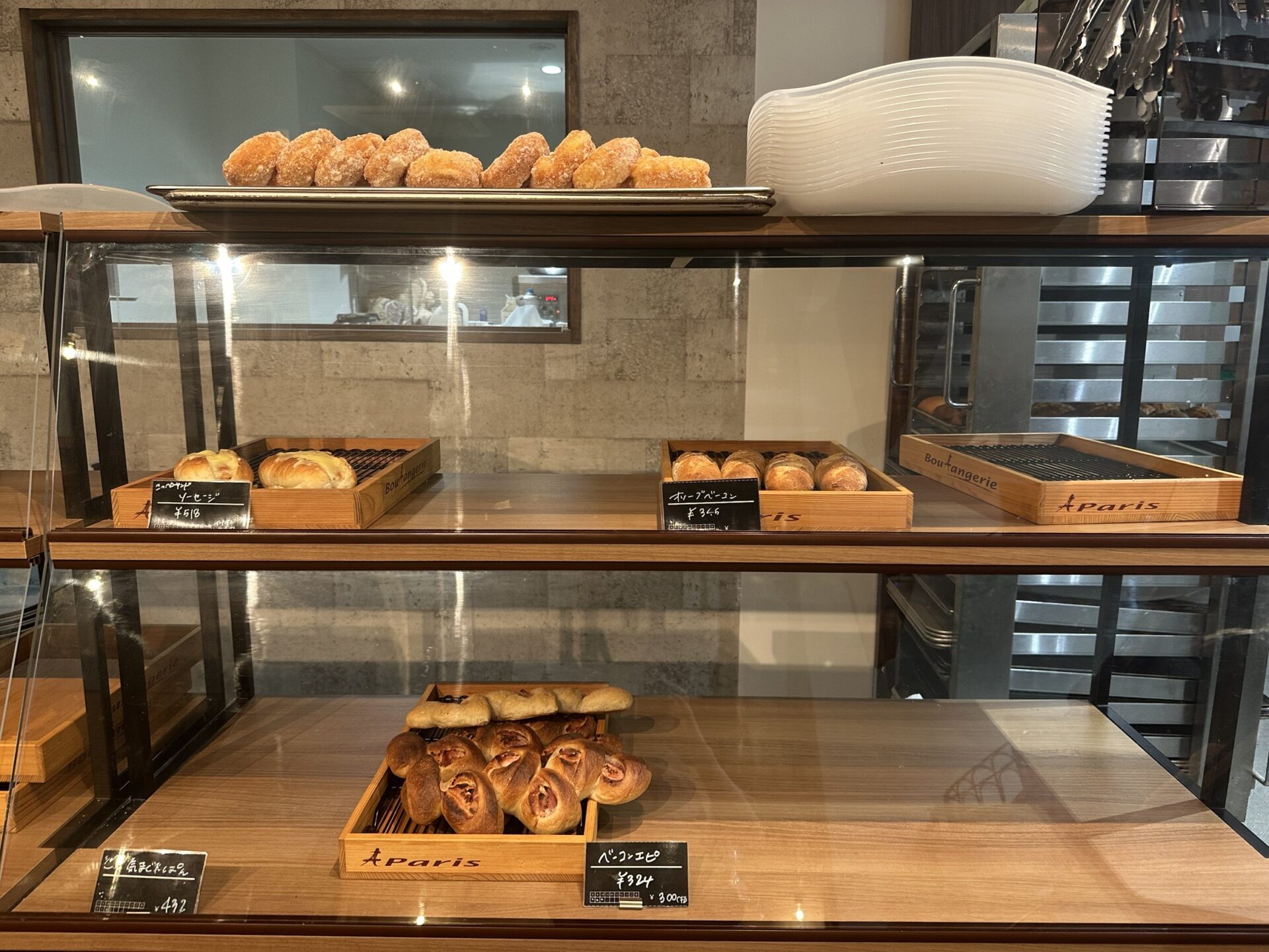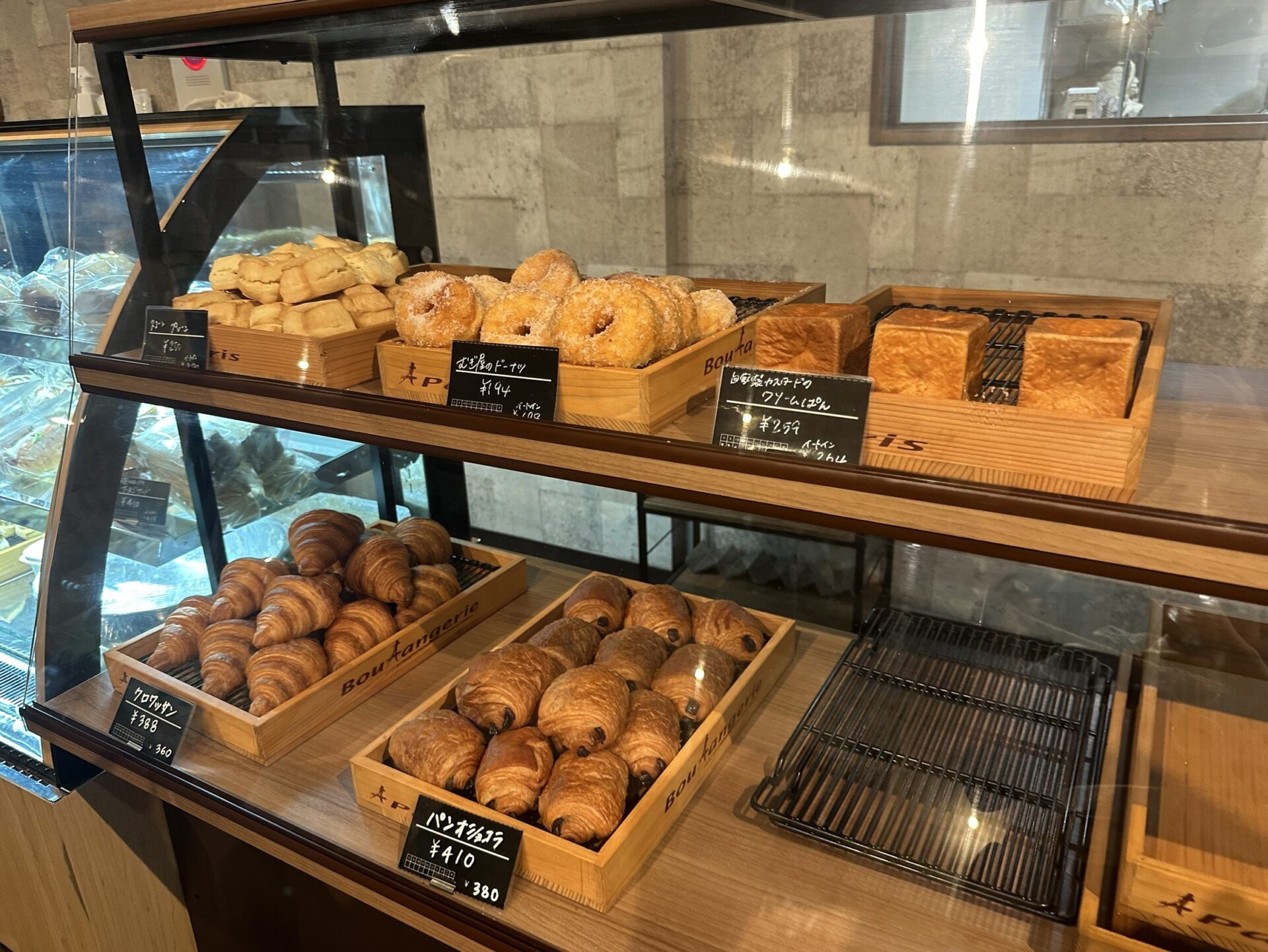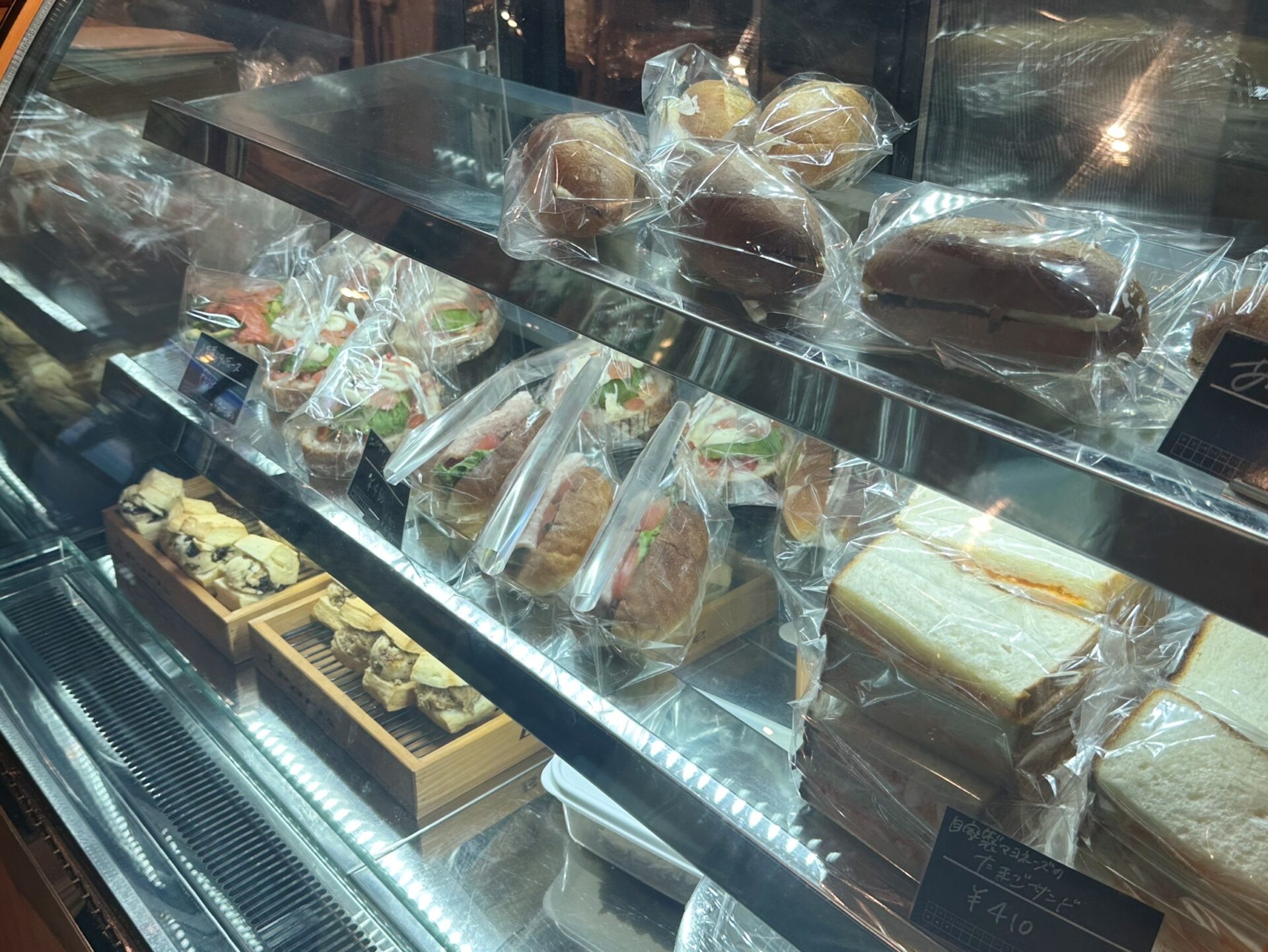 ショーケースには、ハード系、総菜パン、菓子パン、スコーンなどがずらり。