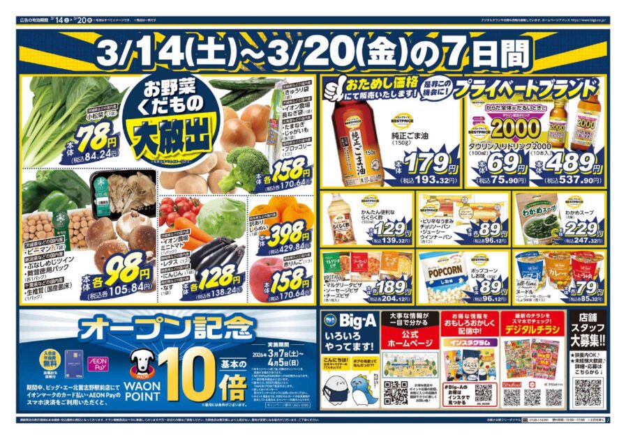 広告商品情報は店内のチラシ、もしくはBig-A公式HP内のチラシで確認することが出来ます。