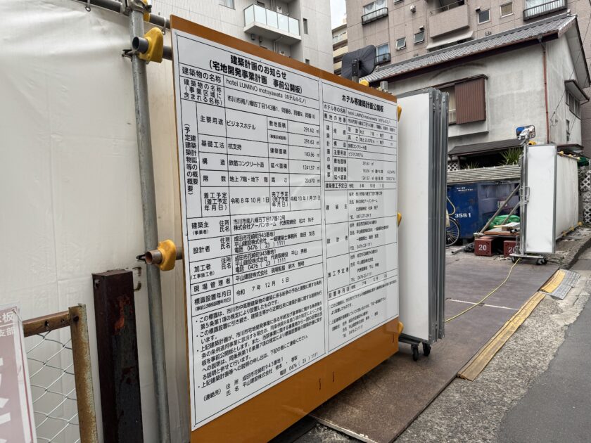 【JR本八幡駅・市川市】HOTEL LUMINO motoyawata建設中【2028年1月完成予定】
